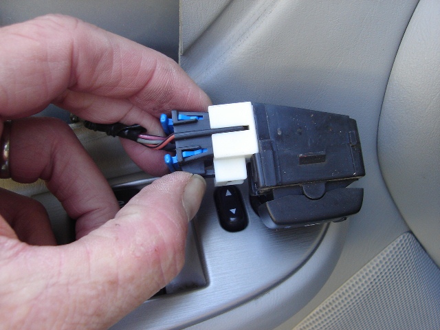 The latch for the power lock button is on the hidden side of the socket, FYI. I pried the switch off of the panel, it slides out from the back.